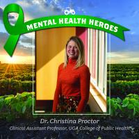 During Mental Health Awareness Month, we're spotlighting Georgians who make a significant impact in the field of mental health, with a special focus on farmer mental health. This week, we're excited to feature a Q&A with Dr. Christina Proctor, a Clinical Assistant Professor at the UGA College of Public Health. Dr. Proctor teaches undergraduate research methods and public health elective courses. As a leading figure in the mental health community, Dr. Proctor works to help people navigate complex topics. This interview highlights her dedication to enhancing mental health outcomes for everyone, particularly in the farming community.
